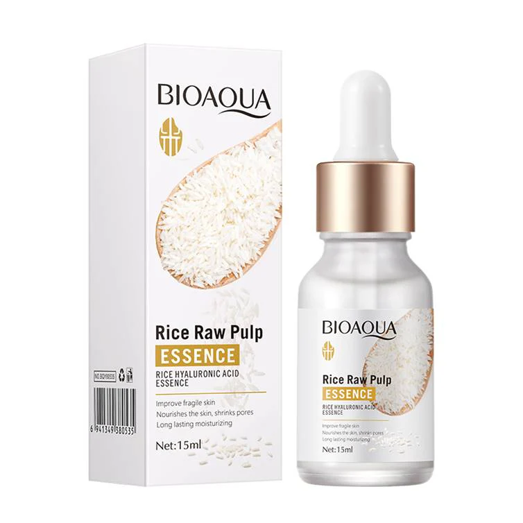 BIOAQUA Rice Raw Pulp Essence Hyaluronic Acid Serum 15ml is an extremely effective solution to soften and smooth the skin. It is nonsticky formula easy to absorb, makes skin radiant.